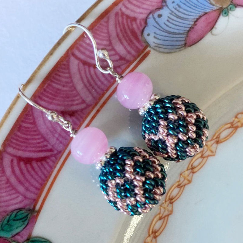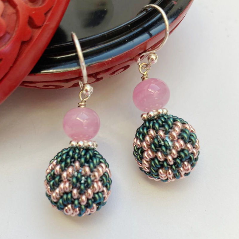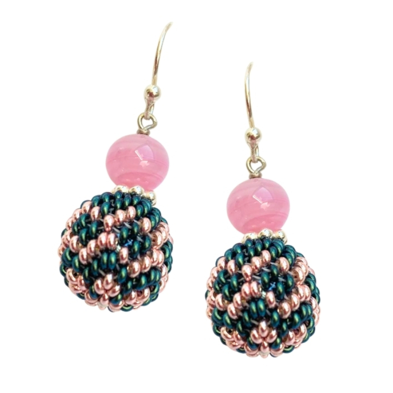 1 Rezension für Ohrhänger kleine Perlenkugel Grün-Rosa-Silber